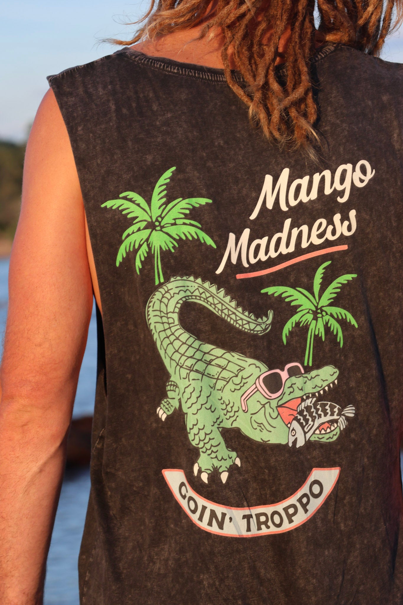 Featuring our wild Goin’ Troppo croc – sunglasses on, attitude dialled up – this tank captures that build-up energy when the storms are brewin’ and your brain’s halfway to cooked. It’s bold, breathable, and built for adventures from the Top End to tinny missions.